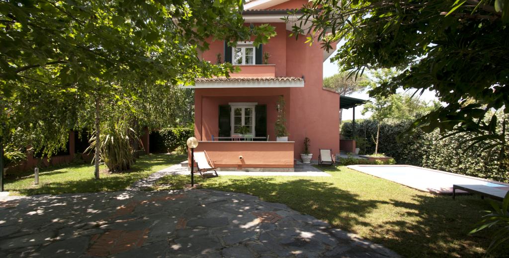 The property is located in one of the most fascinating and uncontaminated areas of Versilia, the famous marine area of Forte dei Marmi. Famous for its 20 km of golden beaches , the extensive pine forests, the nightlife, the evenings on the beaches, the cities of art, cultural and musical events. The property is located on the cost and the distance from the beach is about 1,2 km. The interiors style is modern with design furniture, every season the guests can find an Art Exhibition Installation inside with all informations about artist. At the front, the property includes a swimming-pool, many terraces, a fully furnished lounge area. The outside of the house features a typical Mediterranean garden. The villa offer: 4 Bedrooms (3 Double bedrooms–1 Twin bedroom) 3 Bathrooms (2 with shower and 1with bathtub) 1 Living room, 1 Dining room and 1 Kitchen. Total Person: 8 Square Meters: 120 mq.